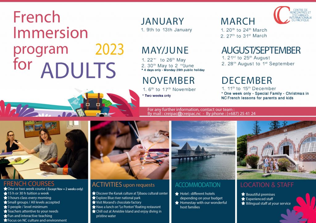Contactez-nous par courriel à : frenchimmersion@creipac.nc Téléphone : (+687) 25 41 24.